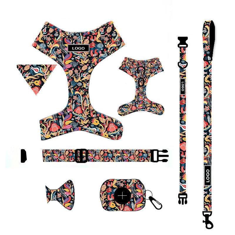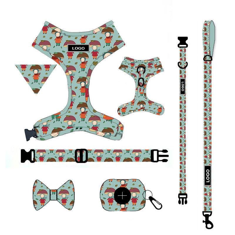 This set includes an adjustable cloth chest strap and a towing rope for walking your pet outdoors. The chest strap fits pets from small to extra-large sizes. Available in four colors: suit series A, B, C, or D.